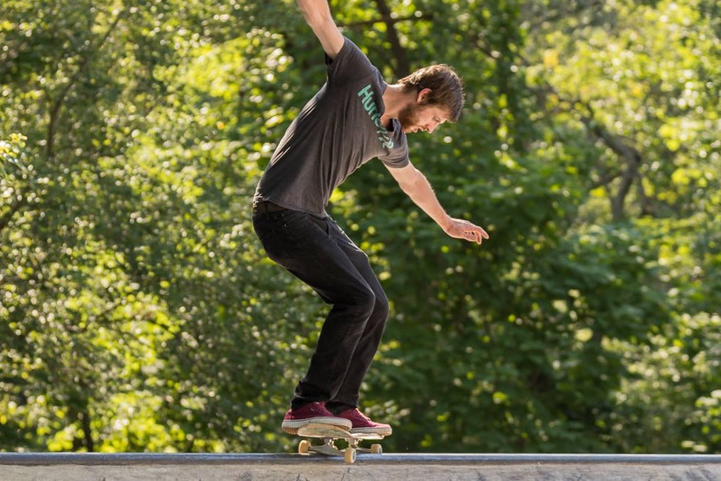 Located on the site of an old outdoor ice rink since 2000, Edgewood Skate Park has experienced a renaissance in the past year, thanks in great part to the tenacity of local skaters who spent years pushing for improvements and funding improvised elements out-of-pocket while they bided their time. Today, an eight-foot chain link fence around the space is gone. The concrete addition with several new quarter pipes, ramps and ledges dips down on the far side of an old asphalt expanse that includes weird elements like a cast-off highway median. Local artists and skaters have lent color and personality to the scene with their street art. “David Moser Is Here” reads one wall, a tribute to the city landscape architect who worked with skaters to design the park’s extension and who died on the same day the renovated park was formally unveiled last September.