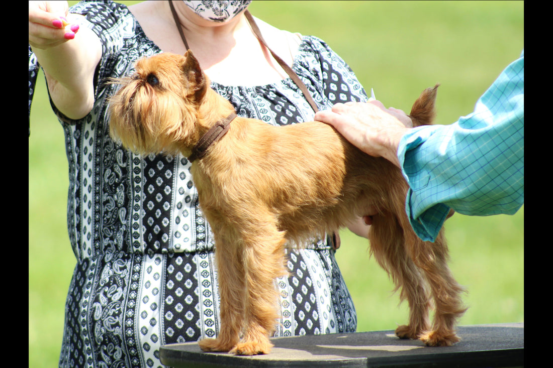 In the sun-dappled field beyond, the business of the day was occurring. There, in each of three small show rings delineated by lengths of wooden lattice fencing, a judge was putting one or more human/canine pairs through their paces. In the far ring, Joe Vernuccio, a Cairn Terrier breeder based in Stratford, was judging terriers, toys and nonsporting breeds. In this ring, I watched as small, often very young dogs—a match show, I learned from ECKC president Abby Patrizio, is open to novices, including puppies as young as 3 months old—took on the challenge of trotting through the rather tall grass. They were encouraged by the voices of their owners, who were in turn given helpful suggestions from the understanding judge.
