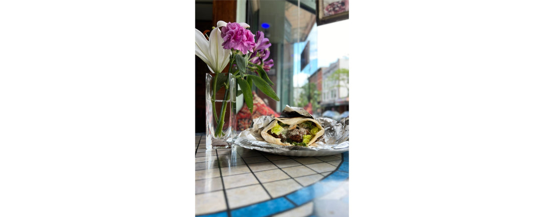 I started at Mediterranea, where small handwritten prices had faded into the overhead menu and wafts of last night’s hookah still sweetened the air. The ‘tile’ patterns of the bay window table tops may have been printed on, but the fresh and dainty flowers on them were real, and so was my aluminum-swaddled falafel sandwich ($7). The pita bread was thin yet elastic, which made it both tastier and stronger, holding everything together from first bite to last and making this my first falafel sandwich that didn’t end in a mess. Supple with just a hint of crisp, the falafel could’ve used a bit more salt; actually, the whole sandwich could’ve used that, plus some fresh herbs to go with the lettuce and tomato. Overall, though, it was a cohesive and satisfying option—and would’ve been even better on a Monday, when a weekly special kicks the price to $5.