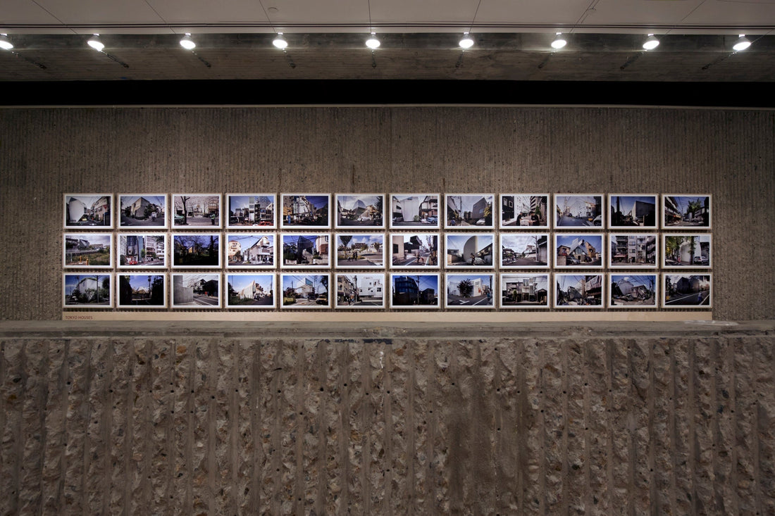 A third segment of the exhibition presents a block of 36 photographed exteriors, evoking en masse the crowded streets of Tokyo, where all of them are located. Again filled with people as well as with vehicles, these images convey the sense of a vibrant, thrumming city. “House Without a Kitchen” by Atelier Takuo Iizuka is shaped like a giant metal helmet with a knob sticking out of one side like a stovepipe or a plug. (We don’t get to see inside to learn about the missing kitchen.) “House in a Plum Grove” by Kazuyo Sejima & Associates takes the word “grove” (or its Japanese counterpart) loosely; the vegetation presses up against the house as if to avoid being run over in the street, while a toupee of grass peeks over the roof. In the photograph of Takeshi HOSAKA architects’ “Reflection in Mineral,” a parked yellow car sheltered by the slant of the house becomes part of its design. And Sakane Keikaku Sekkei’s tilting “Kudan House” leans back, resisting the hill on which it’s built. They’re not all houses you might want to live in, but each offers its own fascination.