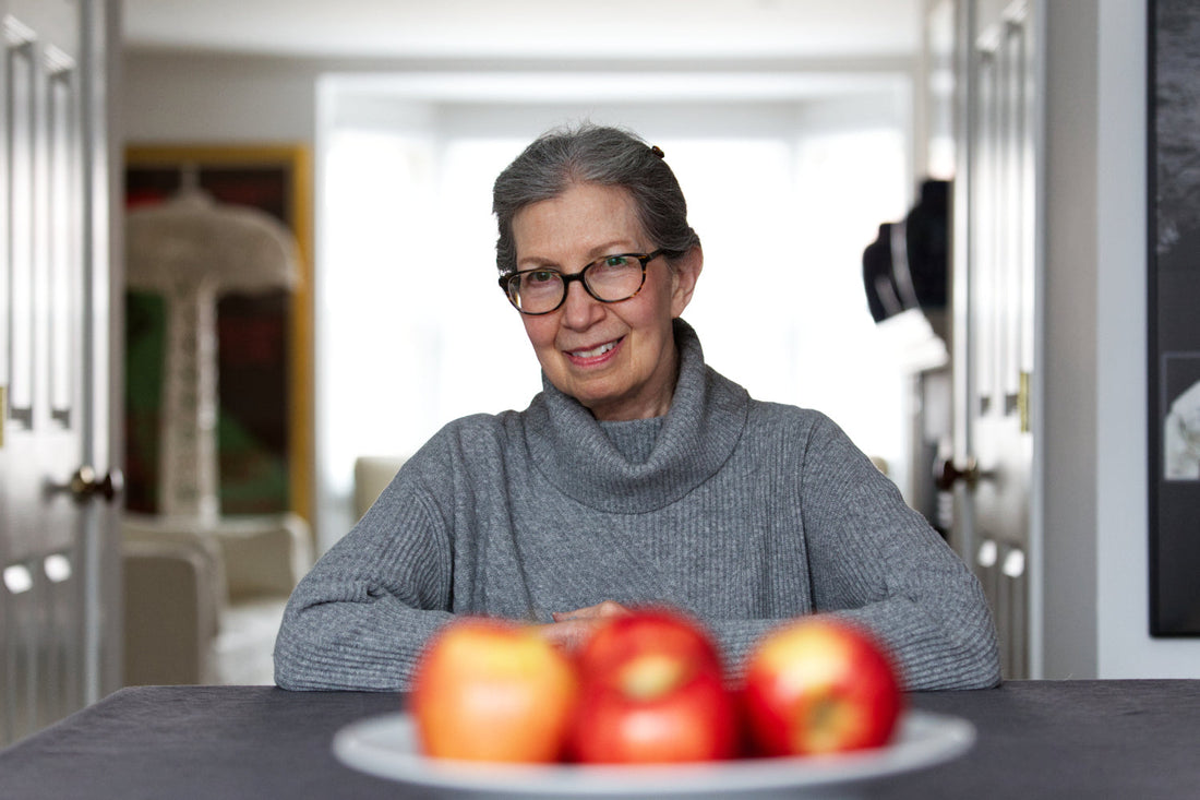 Disputably, perhaps, she describes her retail work—creating or shepherding hand-drawn promotions of this or that product, from conception to layout to illustration—as “not creative,” though she’s thankful that it “kept me at a drawing board.” She managed board time at home, too, and not long after moving to Connecticut, in 1974, she applied for and won the opportunity to stage an exhibition of original works at the Phoenix Mutual headquarters in Hartford. That show, her first solo, included still lifes of “a lot of tabletop things,” many of which have followed her through the decades to her current home in New Haven; the vase that appeared, in drawn form, on the poster for that 1974 show is visible from her couch.