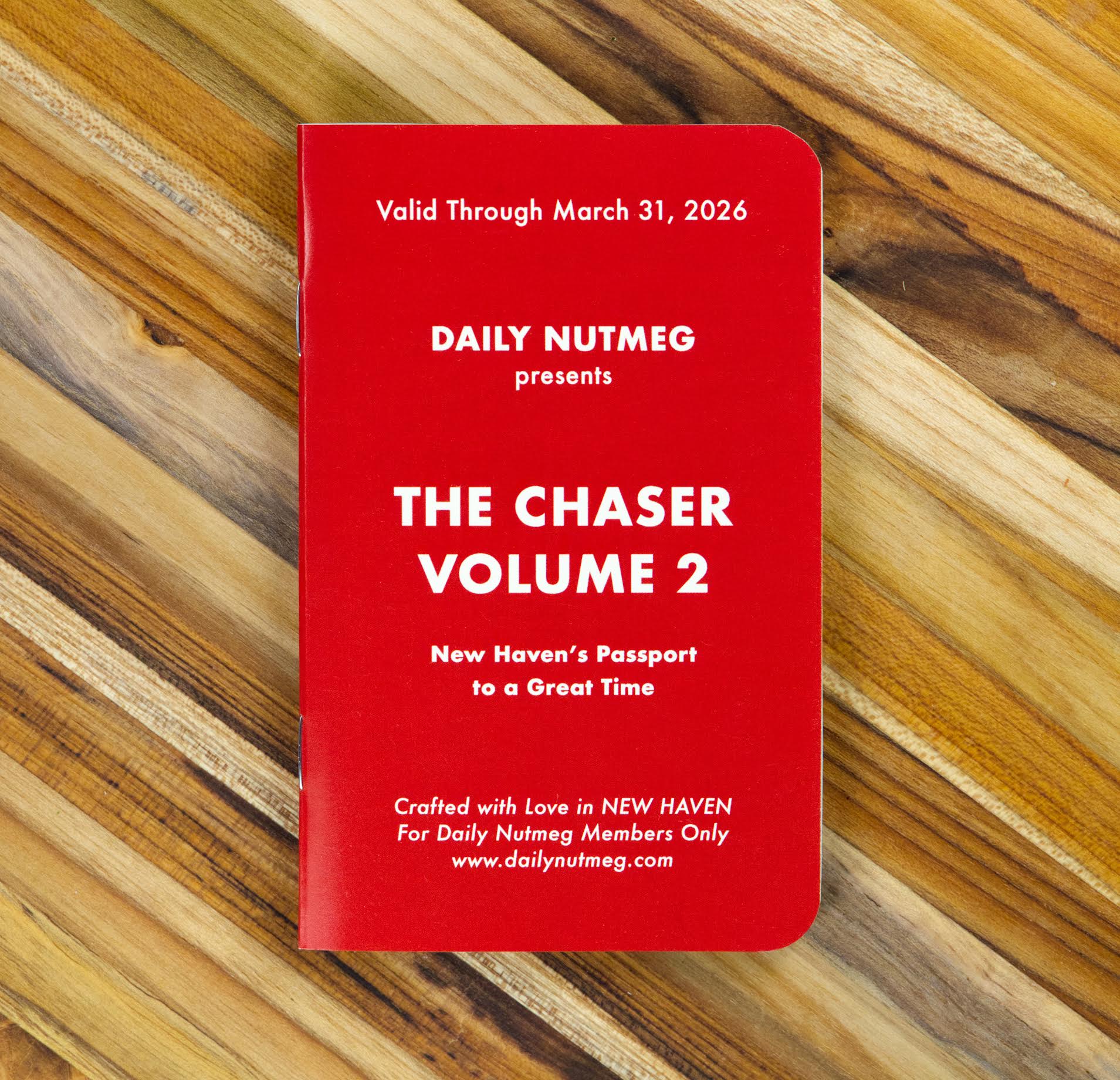 The Chaser is Daily Nutmeg’s pocket-sized passport to New Haven’s best bars and restaurants. Each booklet includes 13 offers — like complimentary drinks or appetizers — at some of the city’s favorite spots.